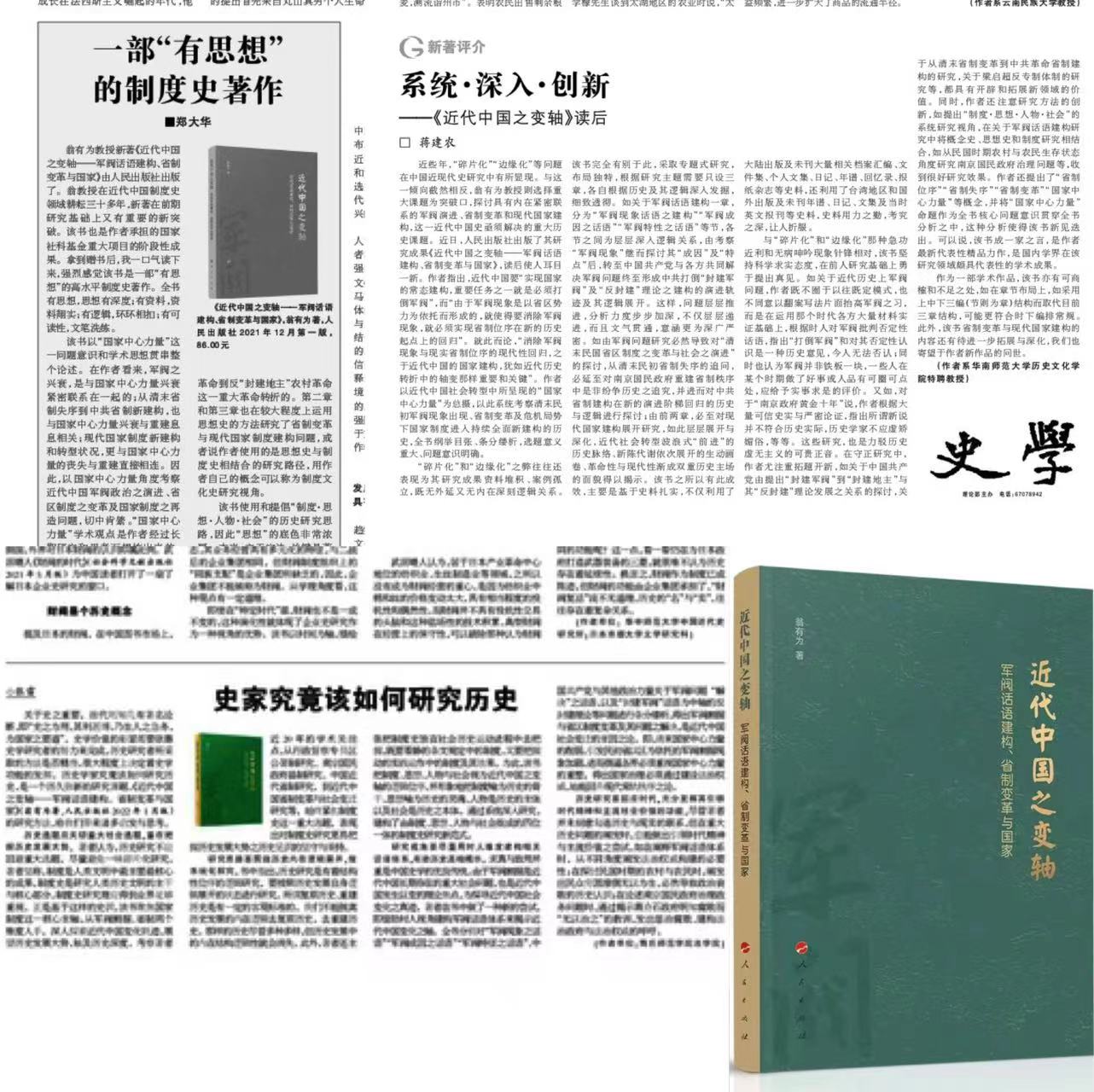 中国近代史所研究员郑大华在《中华读书报》(2022年3月9日,第10版)发表《一部“有思想”的制度史著作》一文,他认为“强烈感觉该书是一部‘有思想’的高水平制度史著作。全书有思想,思想有深度;有资料,资料翔实;有逻辑,环环相扣;有可读性,文笔洗练”。“该书不仅具有重要学术价值,而且对于新时代推进国家治理体系和治理能力现代化建设,也具有启示意义,可以发挥以史为鉴的作用”。