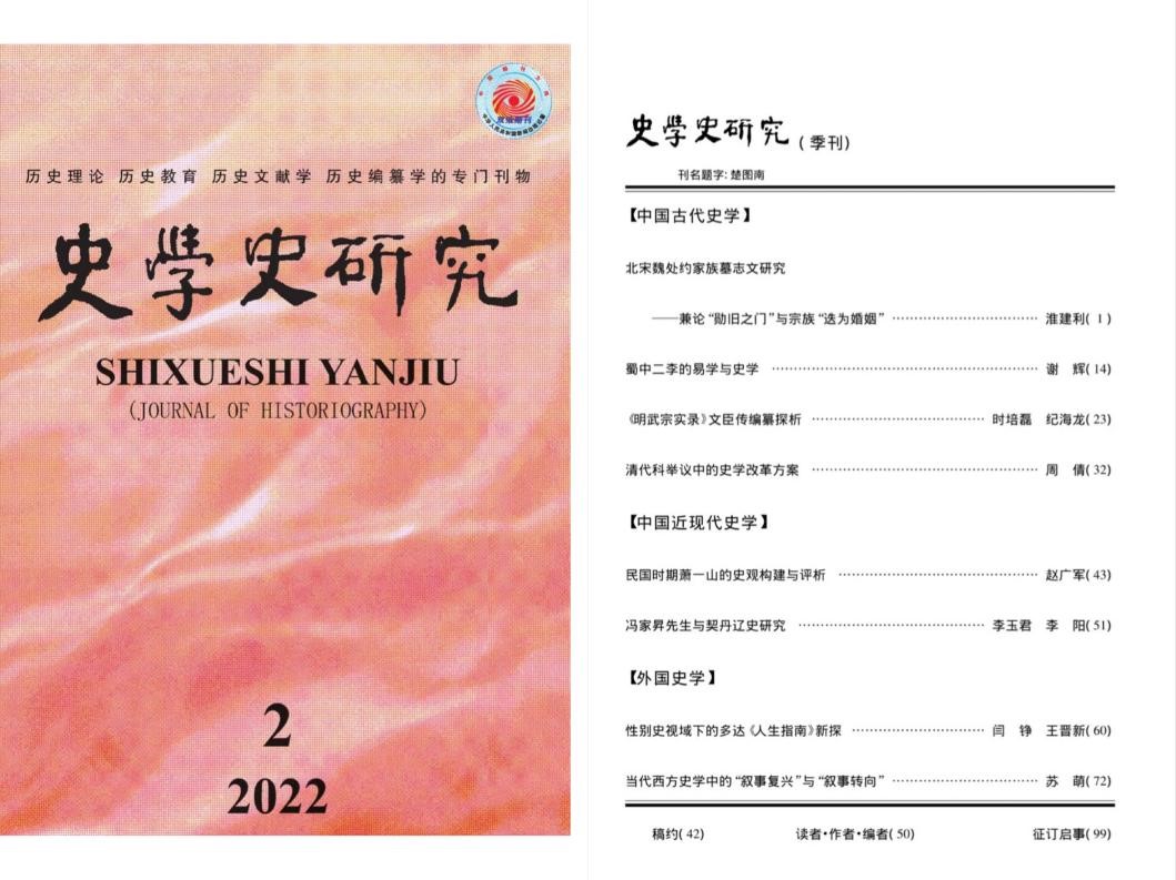 近日,90vs足球比分 副教授赵广军、苏萌分别在《史学史研究》2022年第2期发表题为《民国时期萧一山的史观构建与评析》和《当代西方史学中的“叙事复兴”与“叙事转向”》的专题研究论文。