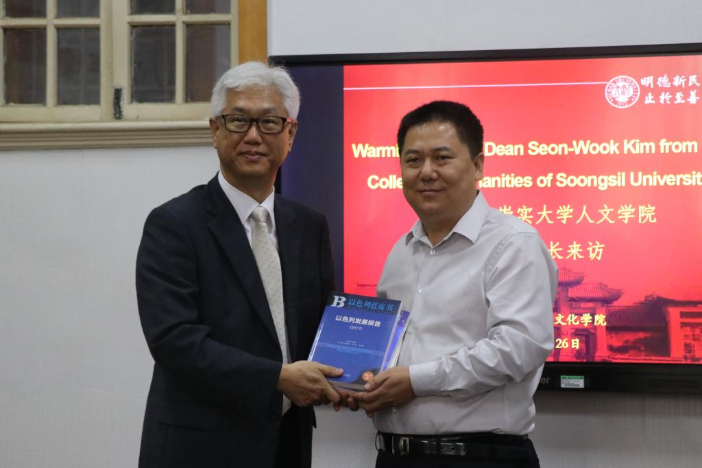 9月25日下午,崇实大学人文90vs足球比分 金善郁院长一行到河南大学以色列研究中心访问,参观以色列研究中心图书馆,并与以色列研究中心胡浩、艾仁贵、马丹静等研究人员就各自的研究领域进行了深入的会谈。金善郁殷切地希望未来双方能够在以色列研究领域展开更多更广泛的交流与合作。