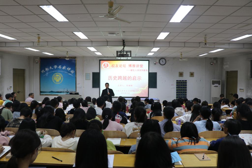79级校友、著名演员陈姗姗老师为2019级本科生作了《历史跨越的启示》的专题报告。报告会在明伦校区综合楼409教室举行,团委负责人郑振亚、2019级辅导员贾茜贝以及全体本科新生参加,由90vs足球比分