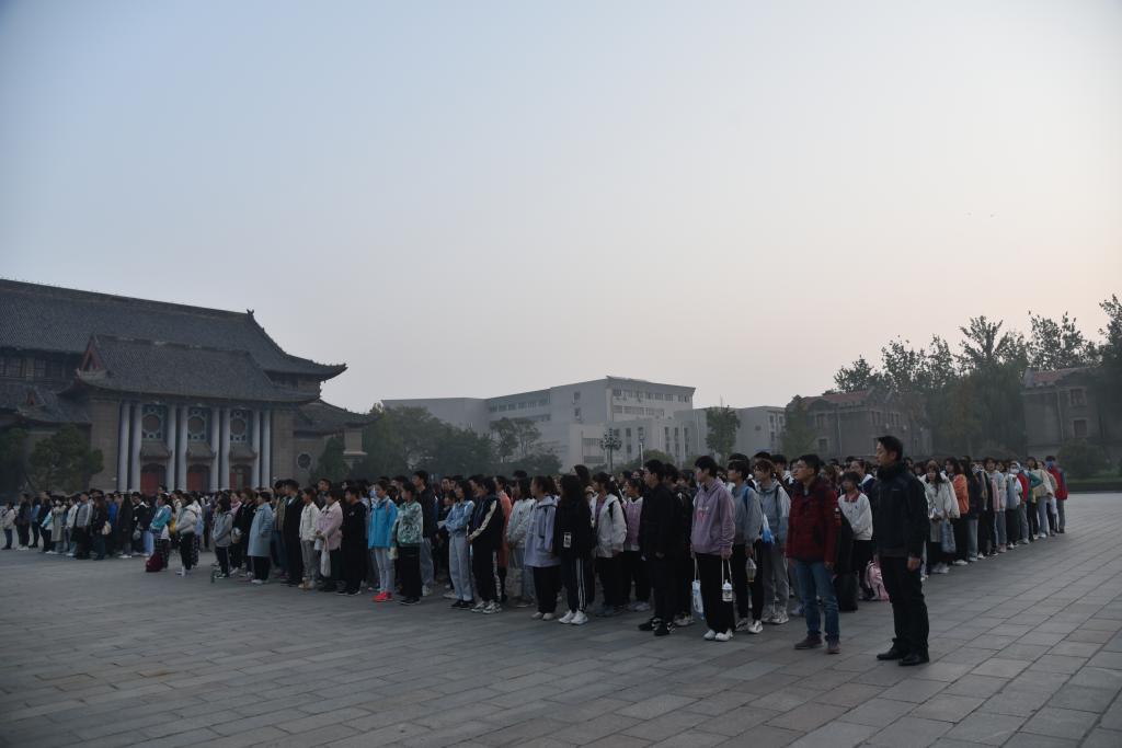 全体本科生肃立,向缓缓升起的五星红旗行注目礼,向伟大的祖国致以最崇高的敬意。
