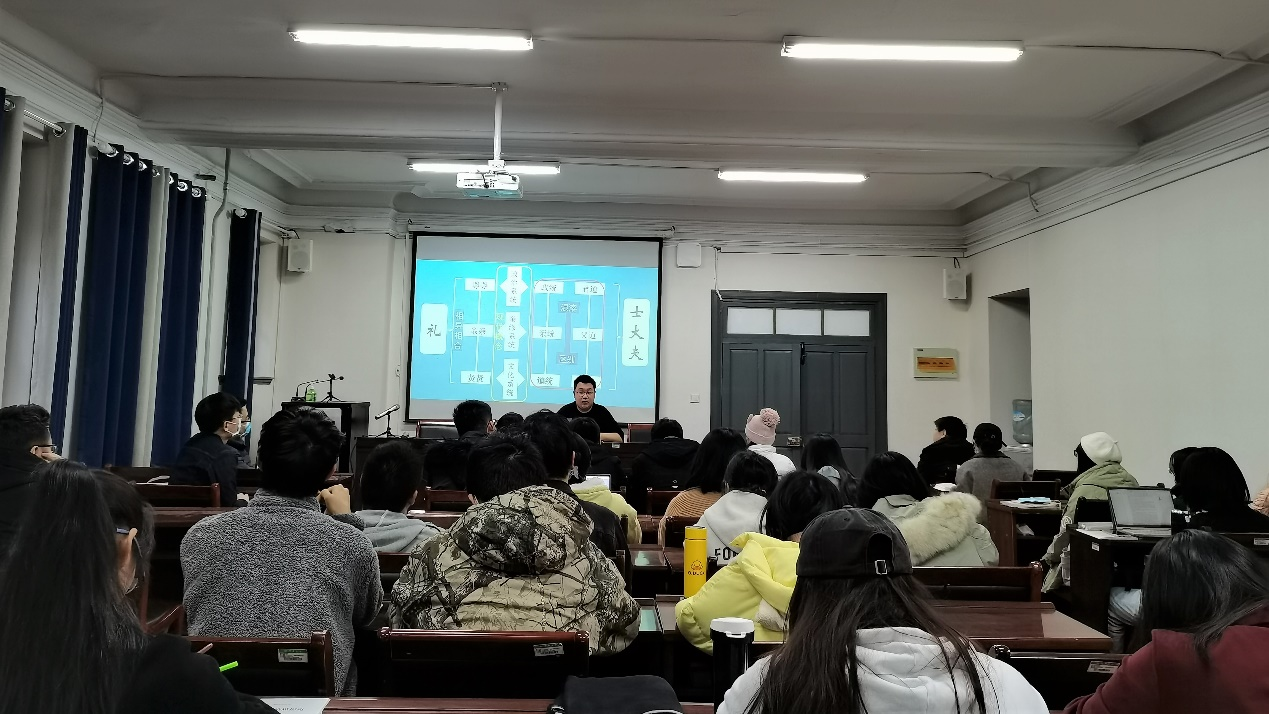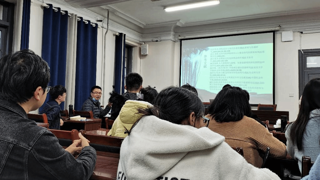 113教室顺利举行第一次读书交流会。本次读书会围绕2019级集体阅读的阎步克《士大夫政治演生史稿》与2020级集体阅读的刘泽华《先秦政治思想史》展开汇报交流。贾坤鹏、宁腾飞两位老师及部分2018级菁英班学生参与此次读书交流会并进行点评。
