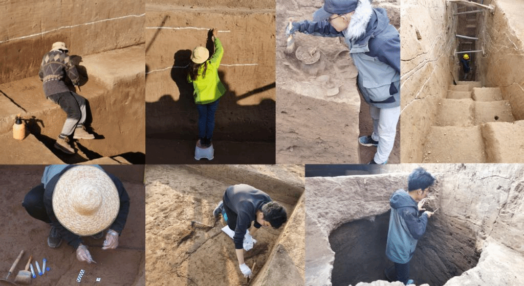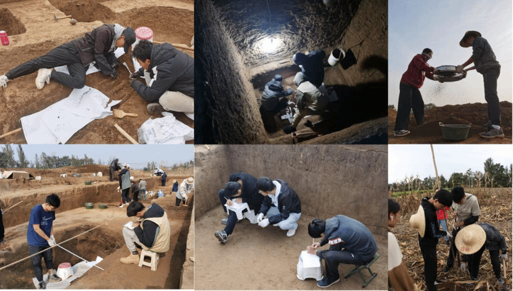 在严格遵守各项疫情防控措施,保证学生安全的大前提下,毅然按照培养方案执行了2019级考古学专业的田野考古实习安排。2021年9月30日,2019级考古学专业17名学生终于在开学一个月后集体乘专车奔赴考古实习地——焦作孟州市司家沟遗址。那个时候的他们是如此渴望考古实践,毫不掩饰内心的激情雀跃,急切期待着自己的第一次布方、第一次发掘墓葬、第一次清理灰坑、第一次出土小件器物、第一次主持一个探方、第一次独立完成发掘资料整理……