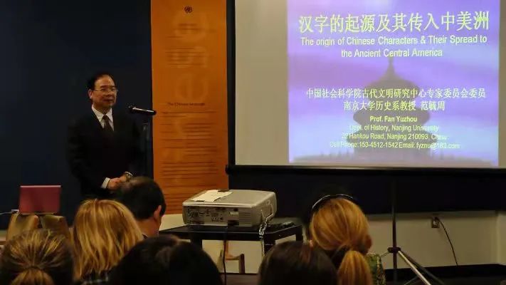 2010年11月12日在联合国总部第一个中文日庆典上为各国代表团作专题报告