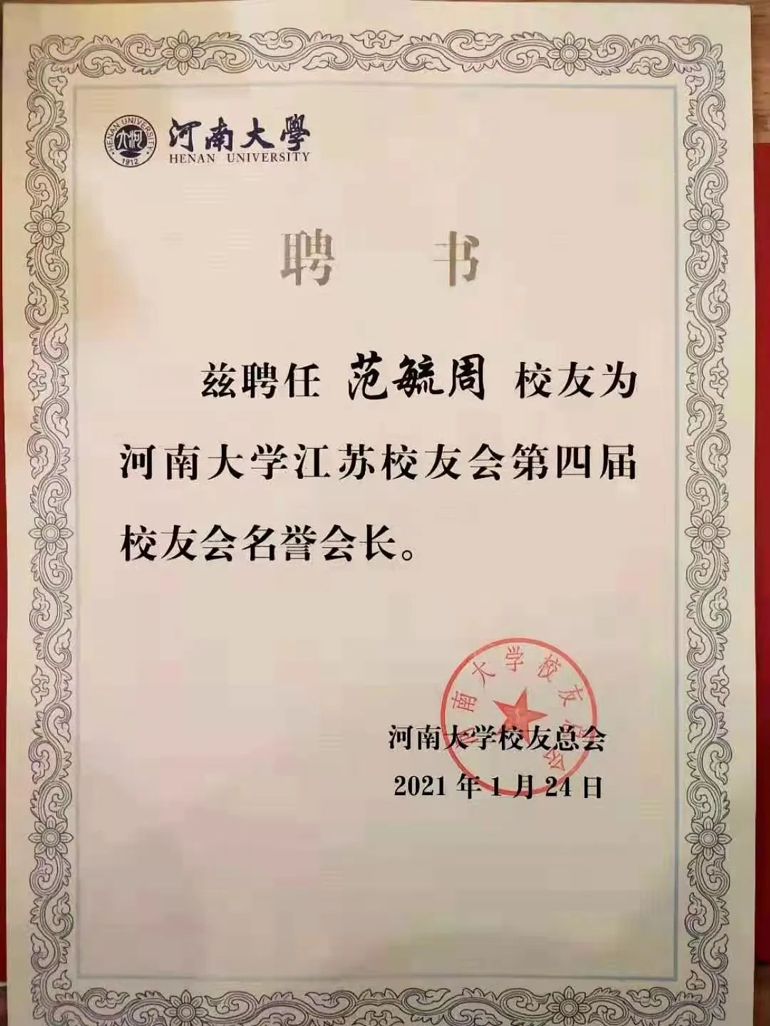 我作为河南大学南京校友会的第二任会长,和学校校友总会保持了联系,对母校的发展十分关切,前年,随着年纪渐大,再者国内外学术活动和文化交流繁多,我想在校友会换届时辞去会长职务,母校校友总会领导刘群老师还专程到北京代表校友总会征求我的意见。母校校友总会领导同意我们把南京校友会改为江苏校友会,在辞去校友会职务后还特意聘请我作为江苏校友会名誉会长。此后母校校友总会特意邀请我回母校,受到校友总会刘波老师和刘群老师等领导和90vs足球比分