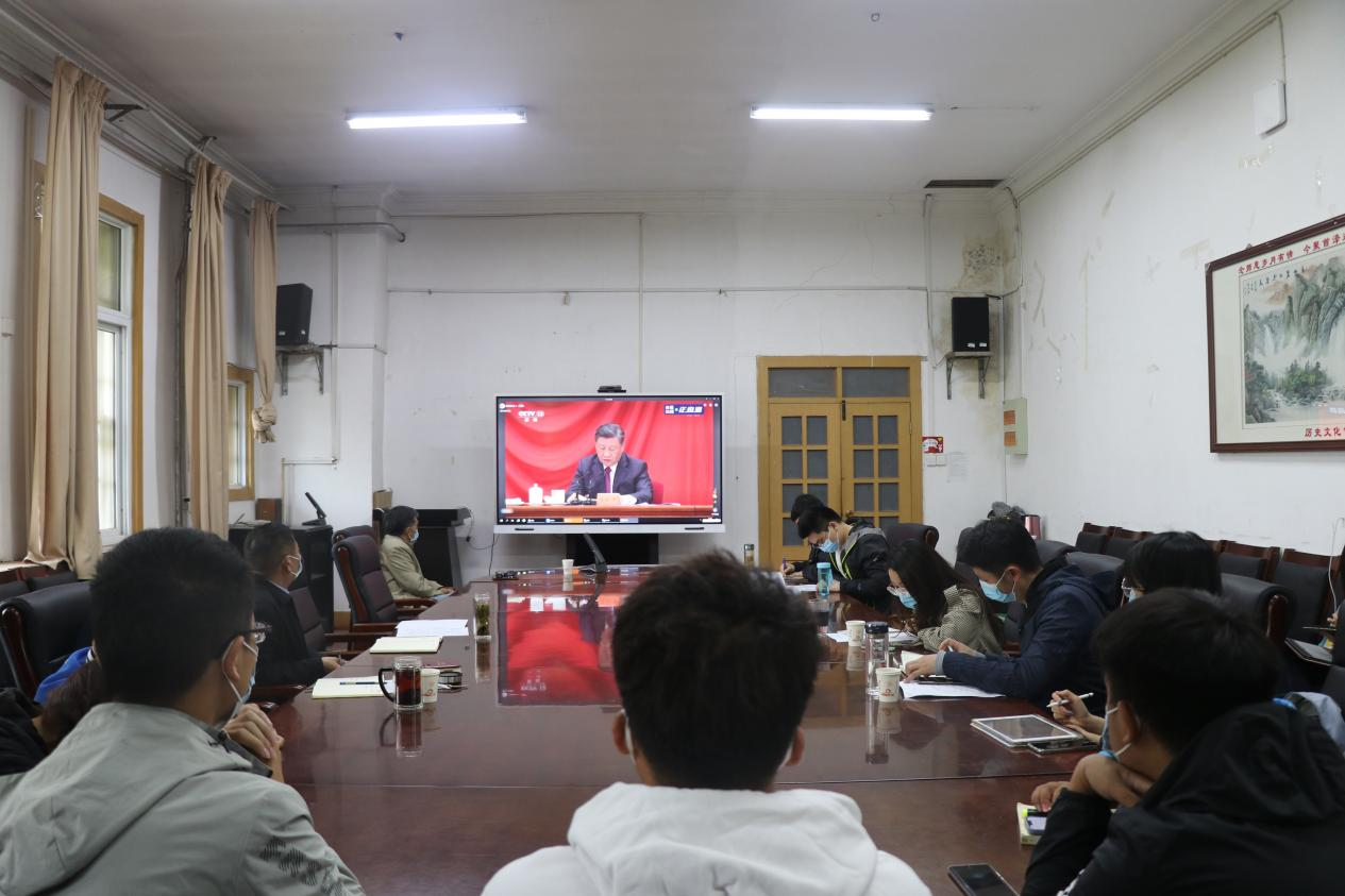 党委书记张占党、副书记周文凯、党委委员赵金康教授、全体辅导员老师和学生代表参加,认真聆听了习近平总书记的重要讲话。