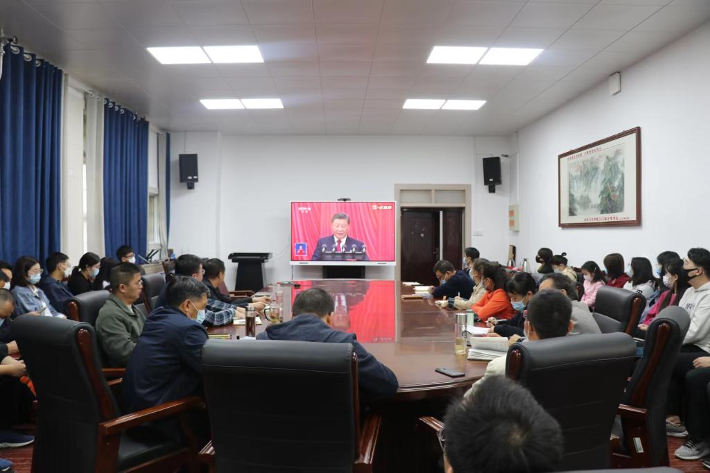 党委委员、领导班子成员、师生代表在院三楼会议室集中观看,现场气氛热烈、满怀期待。