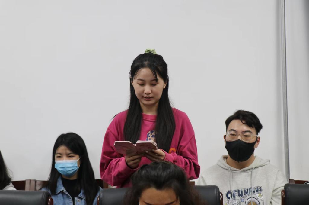 考古文博系党支部书记张玲表示,党的二十大胜利召开,作为高校教育工作者要扛牢自身责任,坚定的沿着党指明的方向,把实现中华民族伟大复兴作为教育的重要使命,在以习近平同志为核心的党中央坚强领导下,牢记立德树人初心,培养德智体美劳全面发展的高质量人才,奋力谱写新时代新征程教育改革发展新篇章,在中华民族伟大复兴不可逆转的历史进程中创造新的发展奇迹。