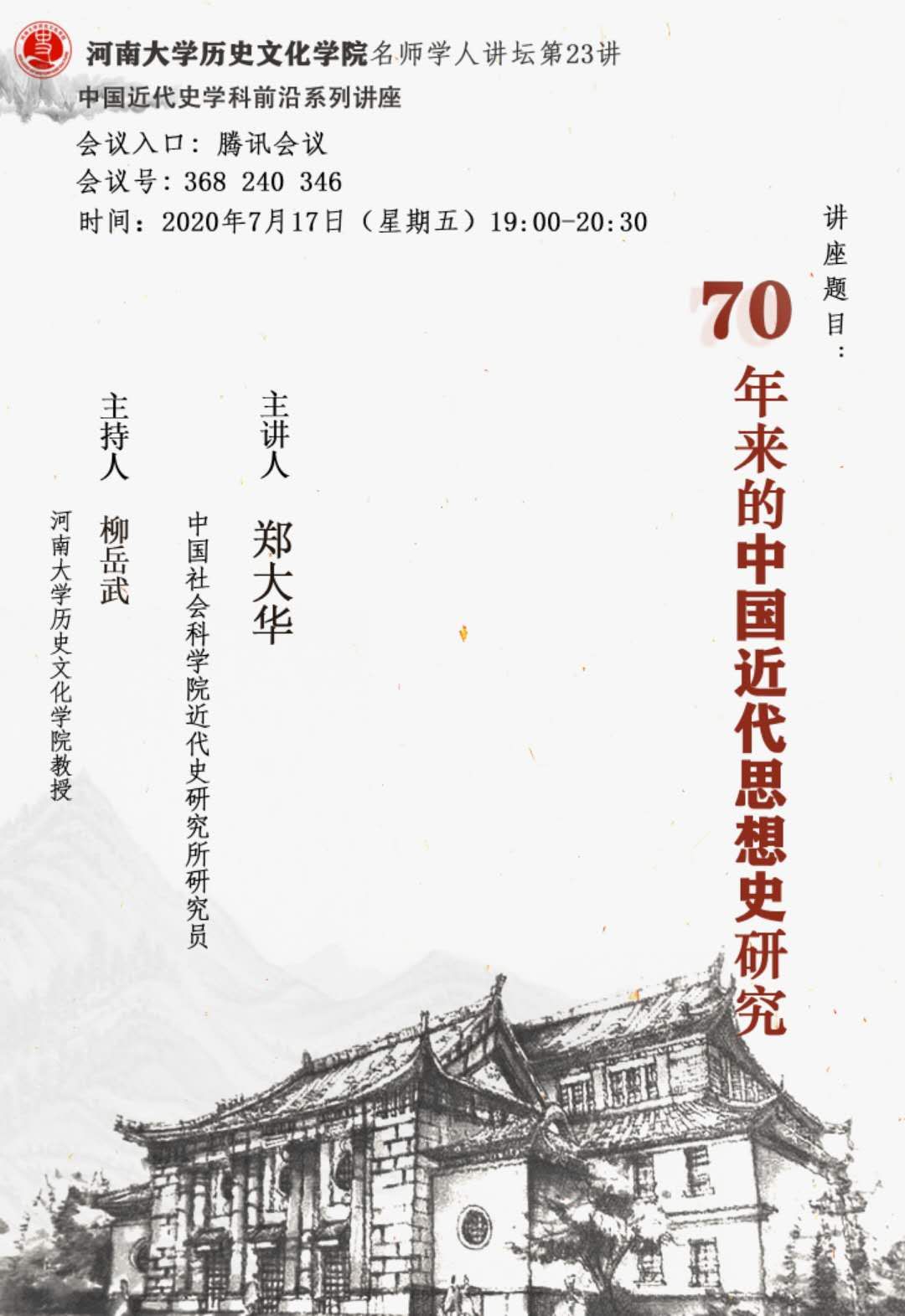 【讲座通知】郑大华:70年来的中国近代思想史研究