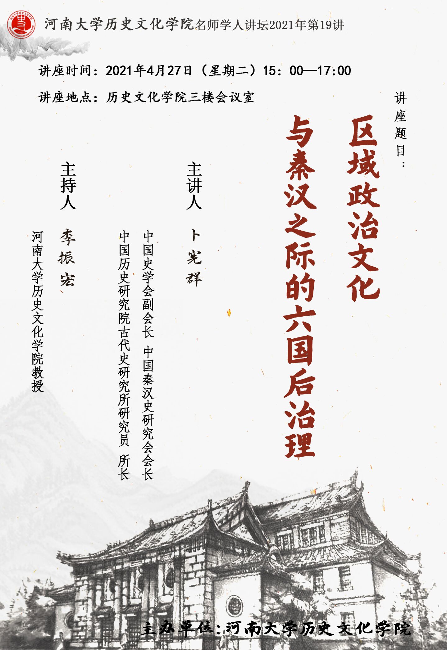 【讲座通知】卜宪群:区域政治文化与秦汉之际的六国后治理