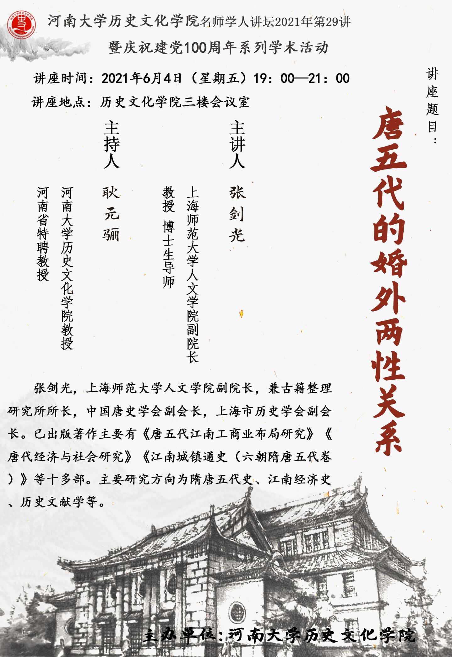 【讲座通知】张剑光:唐五代的婚外两性关系