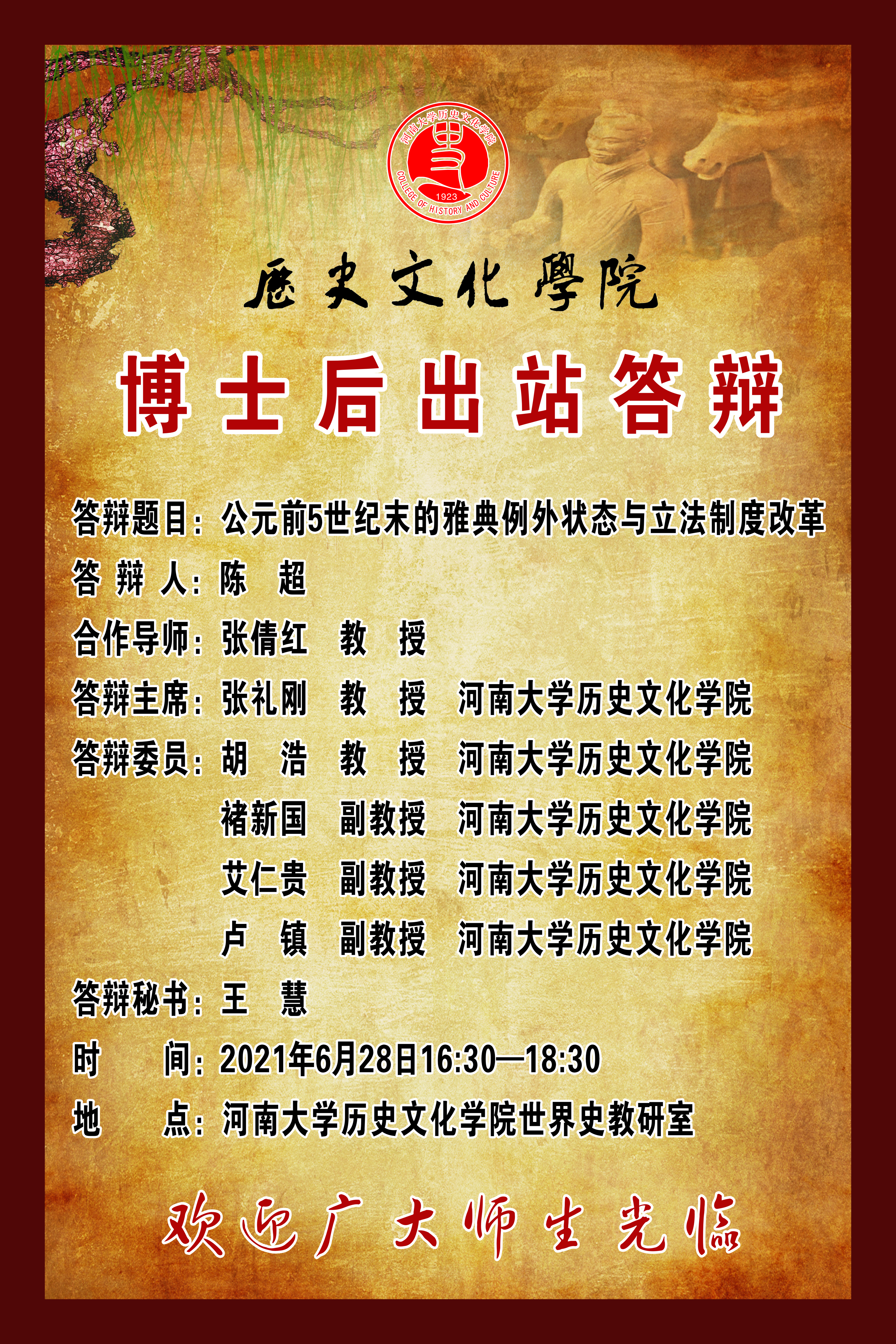 【通知公告】陈超:公元前5世纪末的雅典例外状态及立法制度改革