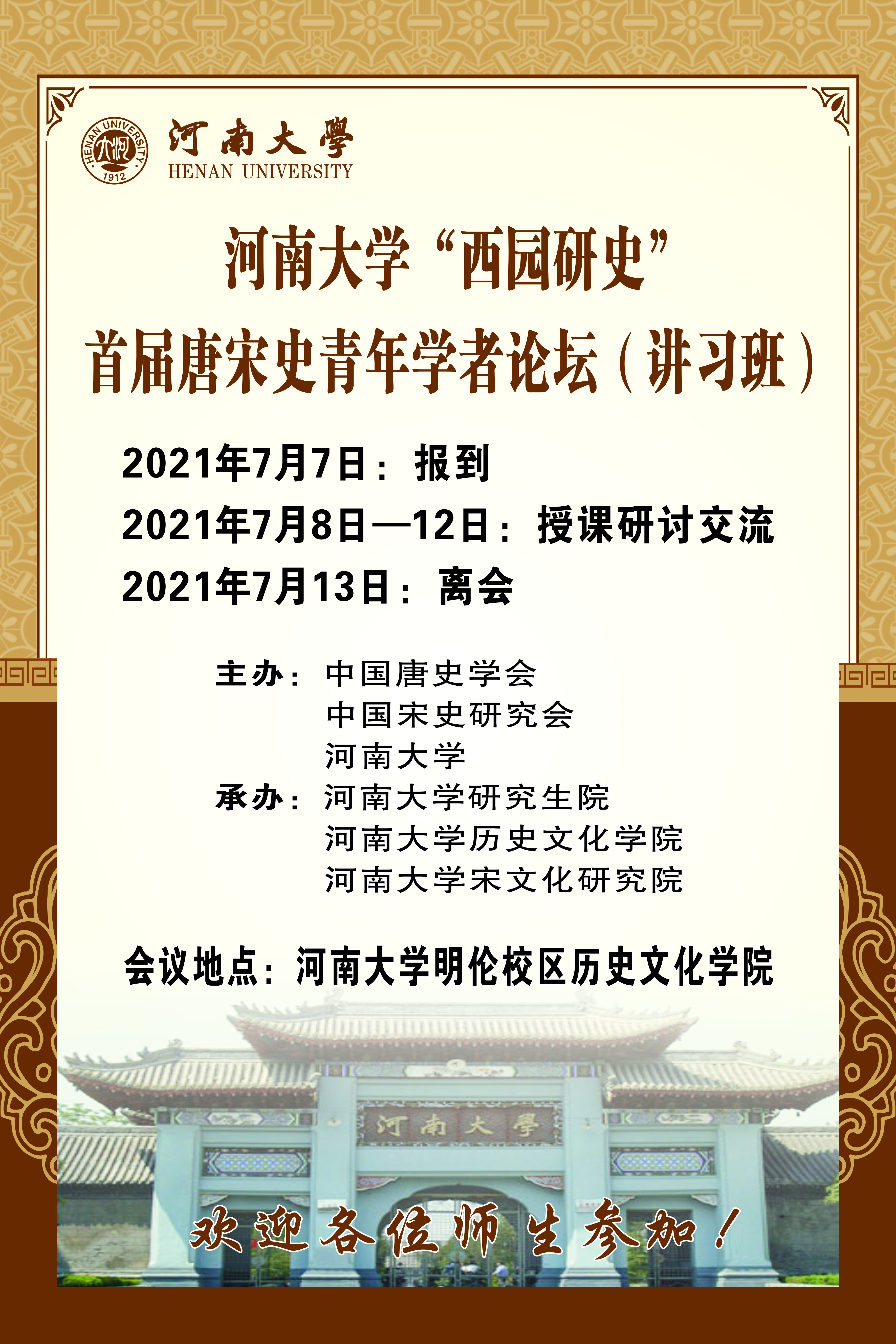 【学术会议】河南大学“西园研史”首届唐宋史青年学者论坛(讲习班)日程