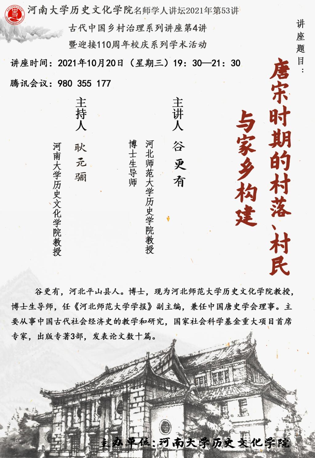 【讲座通知】谷更有:唐宋时期的村落、村民与家乡构建