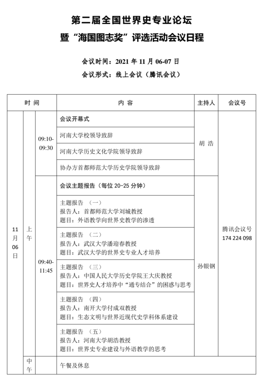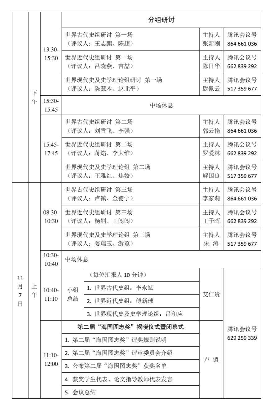 第二届全国世界史专业论坛 暨“海国图志奖”评选活动会议日程