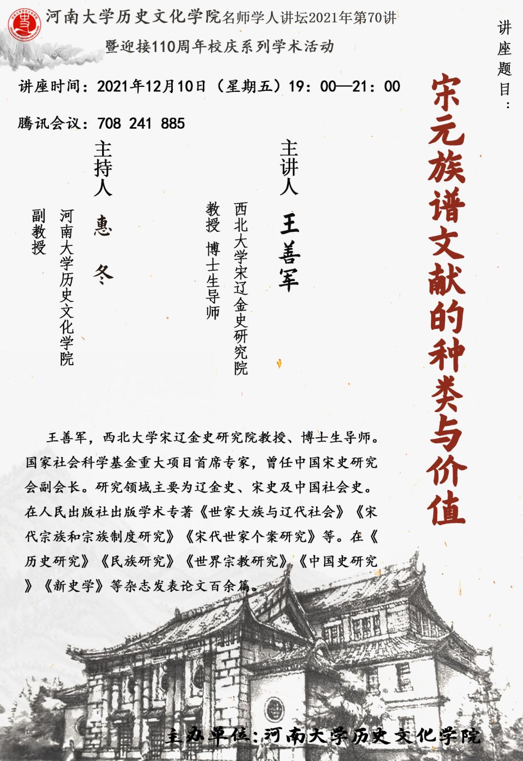 【讲座通知】王善军:宋元族谱文献的种类与价值