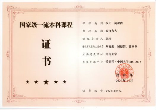 拥有多项省级以上教学成果,《< 孙子兵法>解读》为国家精品视频公开课程,《秦汉考古》为国家精品在线开放课程,《中国古代史》《中国近现代史》为河南省精品课程,《世界历史文献选读》为省级双语示范课程。