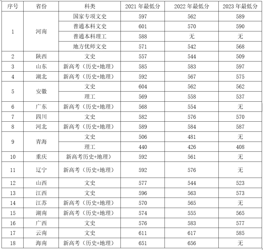 历史学(公费师范生) | 文史 | 20人 |