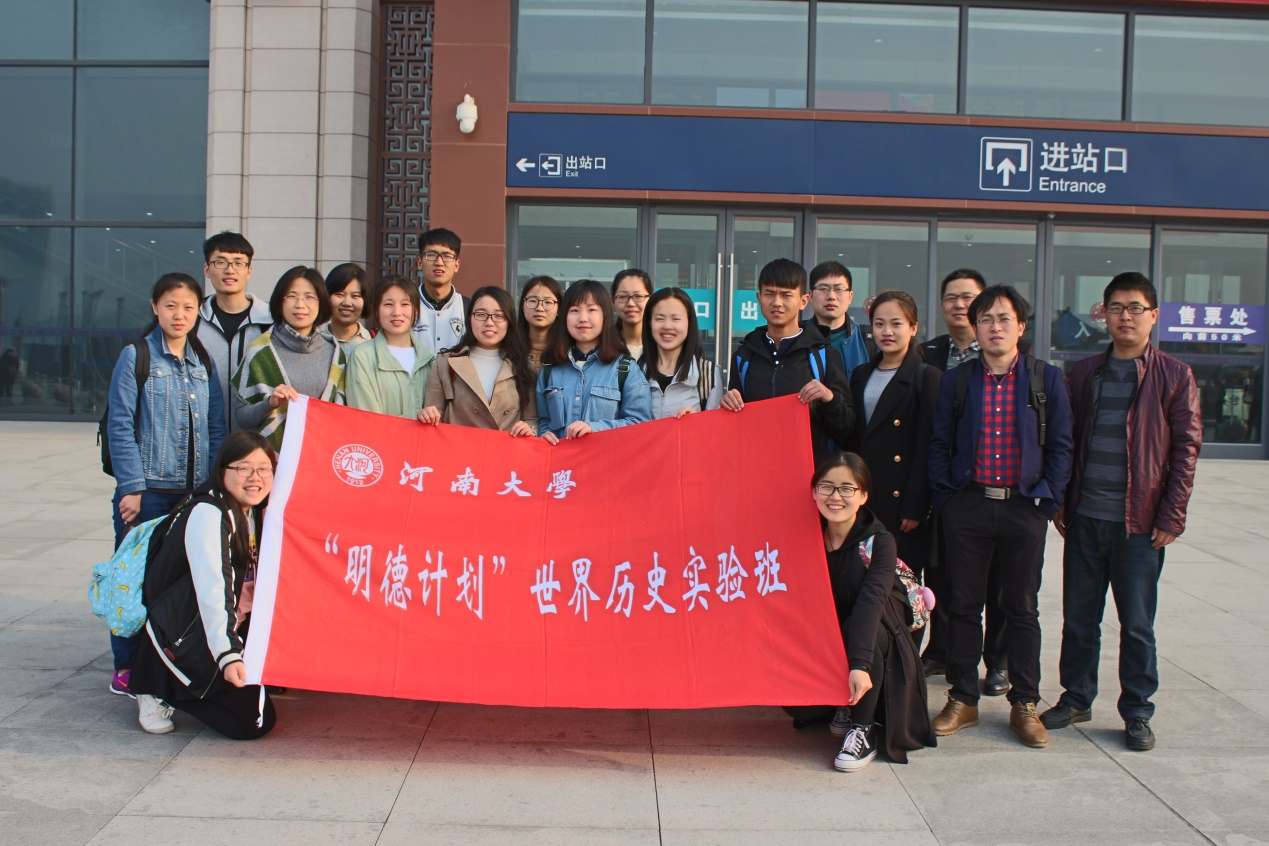 为了配合实验班出访,并宣传介绍我校世界历史实验班,世界史的教师们集体设计了一面“河南大学‘明德计划’世界历史实验班”的班旗,用于对外交流时展示实验班的形象,并专门举行了实验班班旗授予仪式。