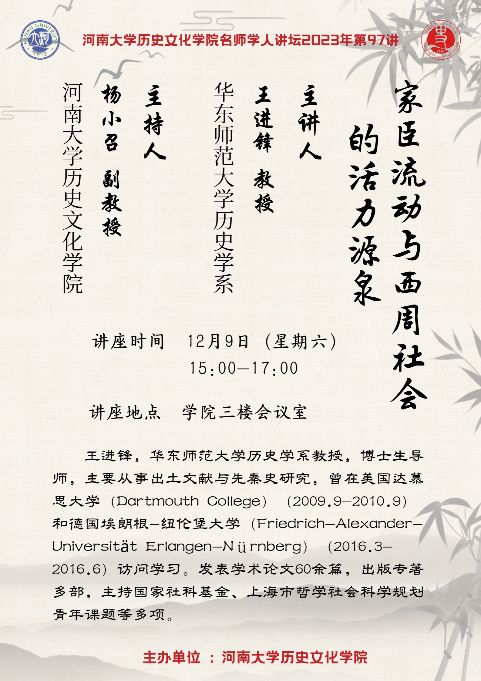 【讲座通知】王进锋:家臣流动与西周社会的活力源泉