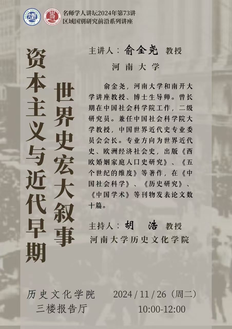 【讲座预告】俞金尧:资本主义与近代早期世界史宏大叙事