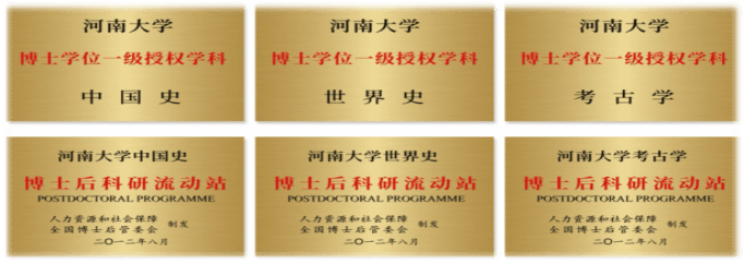 目前有考古学、中国史、世界史三个一级学科博士、硕士学位授权点及博士后科研流动站,学科教学(历史)、文物、博物馆三个专业硕士学位授权点。其中,中国史被列入河南大学学科筑峰计划。