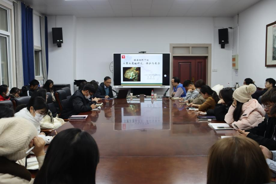 做题为《探源视野下的二里头遗址研究、保护与展示》的讲座,本场讲座由河南大学黄河文明与可持续发展研究中心侯卫东副教授主持。