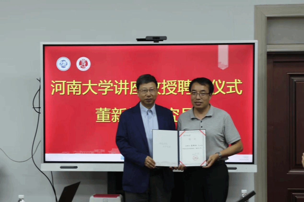 院长祁琛云为董新林颁发河南大学讲座教授聘书,对董新林的加入表示热烈欢迎。