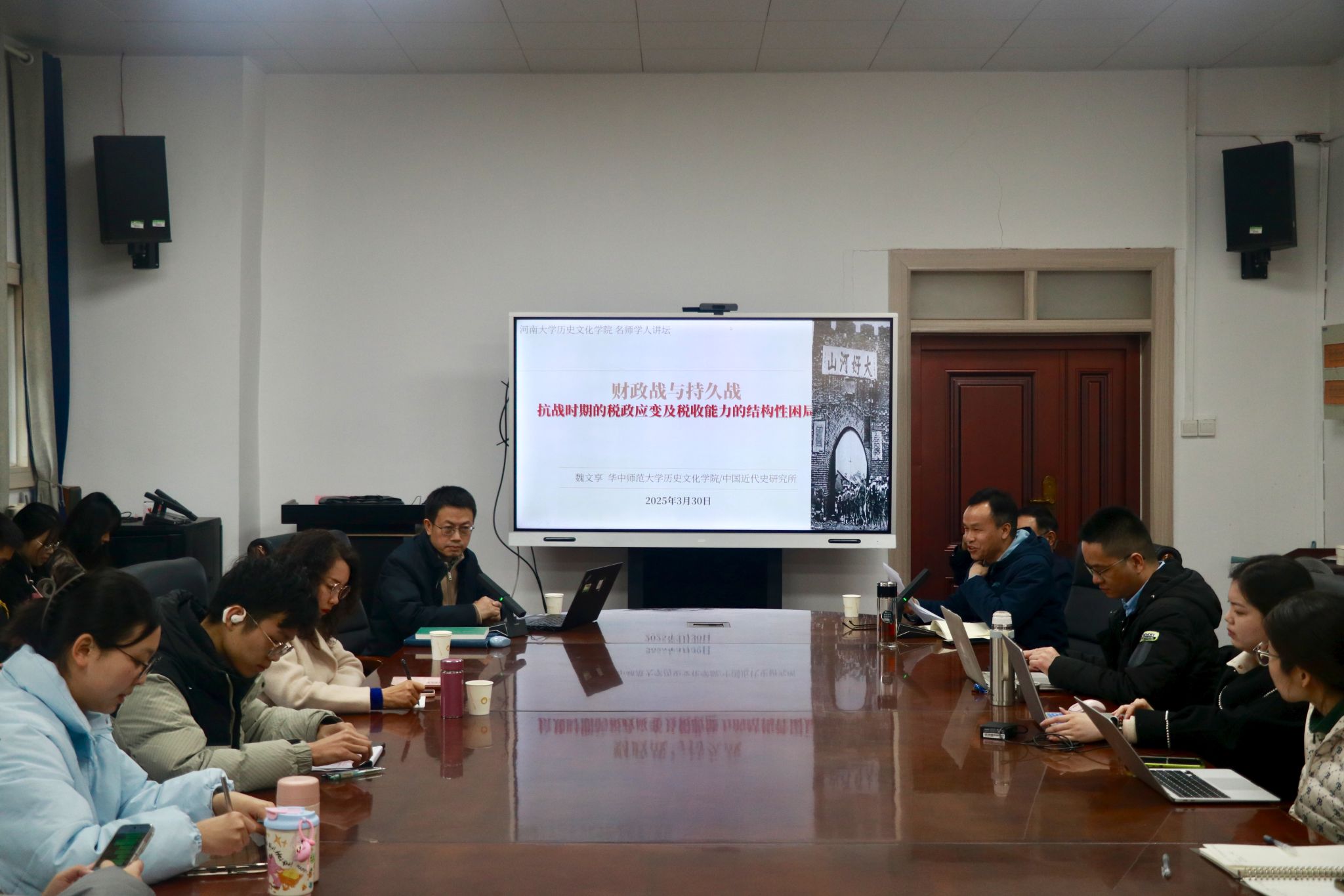 2025年3月30日上午,华中师范大学90vs足球比分 院长、中国近代史研究所教授、博士研究生导师魏文享受邀在90vs足球比分 三楼会议室做题为《财政战与持久战:抗战时期的税政应变及税收能力的结构性困局》的讲座,本场讲座由90vs足球比分 柳岳武教授主持。