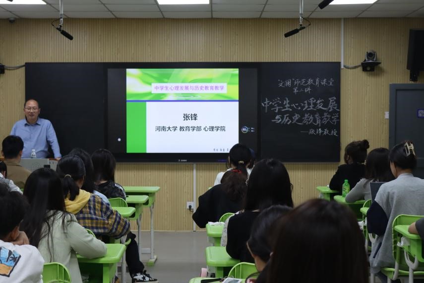 讲座伊始,张锋教授引用习近平总书记的话指出,历史是最好的教科书,也是最好的清醒剂,是最好的老师,它忠实记录下每一个国家走过的足迹,也给每一个国家未来的发展提供启示,同历史对话,我们能够更好认识过去、把握当下、面向未来。接着,他表明,发展是指有机体伴随着时间的延续在结构和功能上发生变化的现象和过程,包括身体发展和心理发展,而心理发展不同于生理发展,它相当于个体的“软件”的变化和发展,中学生心理发展具有过渡性、闭锁性、社会性、动荡性等特点。然后,他详细介绍了中学历史学科的育心功能,历史学科有利于陶冶学生的情操,开发学生的心理潜能,提高道德素养,帮助学生树立正确的价值观,有利于提高学生心理韧性,帮助学生形成健全的人格,激发学生非智力因素,培养学生的坚强意志,有利于坚持立德树人,培养全面发展的时代新人。最后,张锋教授对中学历史学习心理与教学策略进行了介绍,要根据注意规律,提高课堂教学效率,遵循记忆规律,巧记历史知识,学会合理归因,增强学习动力,保持适度动机,提升历史学习效果,要运用强化原理,形成学习获得感,掌握思维导图,优化知识结构。