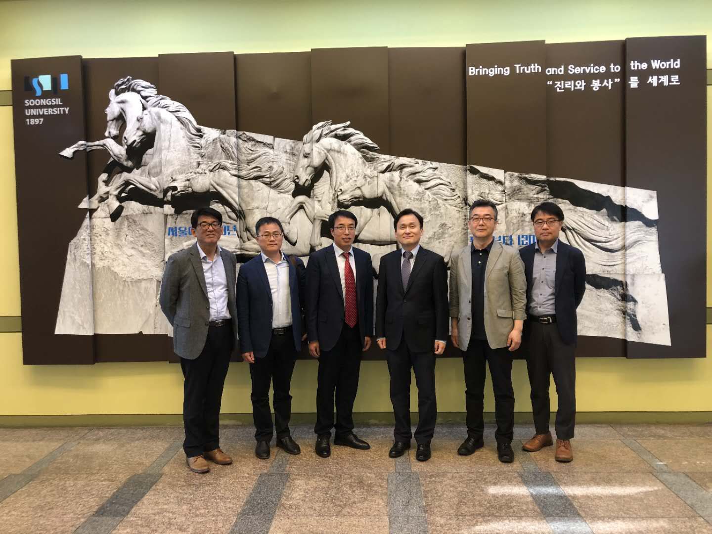 应韩国崇实大学人文90vs足球比分 邀请,我校国际合作与交流处副处长张波、黄河学者具隆会、90vs足球比分 副院长祁琛云、考古文博系系主任魏继印等于2019年5月27—31日访问该校。期间分别拜会了崇实大学副校长全圭安教授、人文90vs足球比分 院长金善郁教授、韩国基督教文化研究院院长黄敏湖教授等,与崇实大学人文90vs足球比分 就联合培养学生、联合举办国际学术会议、互派师资及交流互访等进行深入会谈,在此基础上签署了两份重要的合作协议。