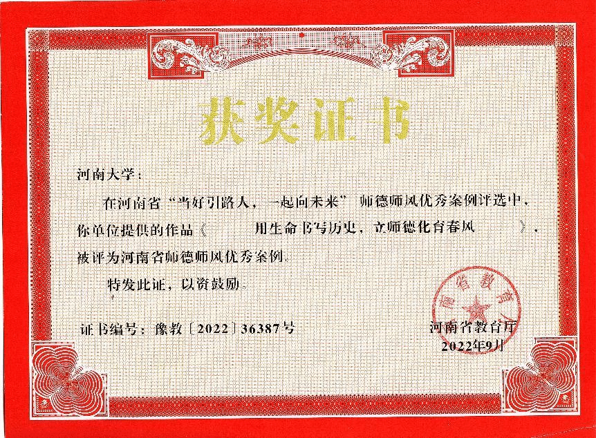 古代史教研室党支部坚持立德树人,充分发挥党建引领作用,曾荣获“河南大学先进党支部(2016年)”等荣誉称号。