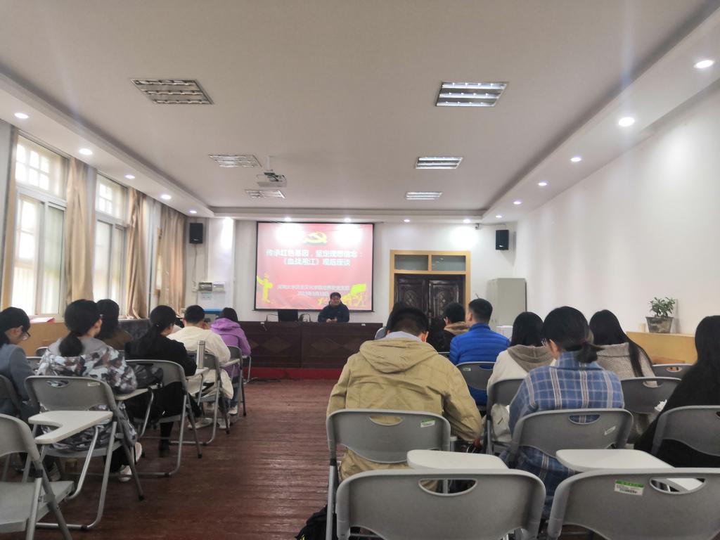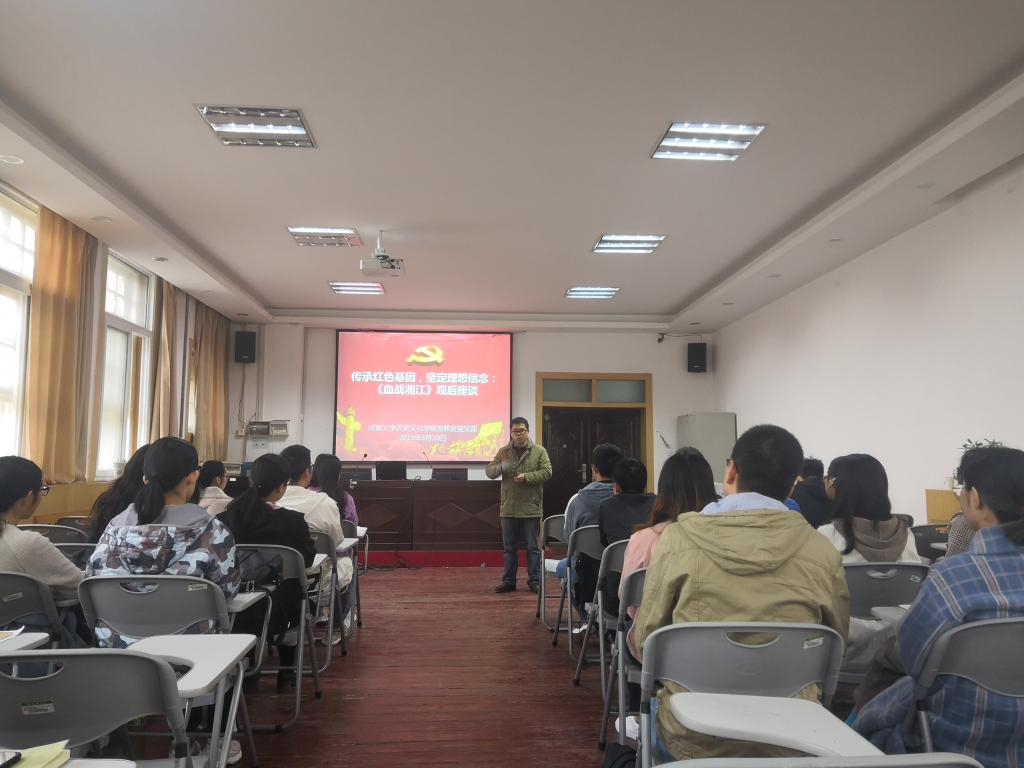 世界史党支部书记李恒表示,时值两会,《血战湘江》再次得到委员们的热烈讨论,影片塑造了以毛泽东为代表的中国共产党领导人的光辉形象,生动再现了红军将士顾全大局、勇于牺牲,奋力掩护中央红军渡过湘江的英雄事迹,正是他们的牺牲,保留了革命的火种。影片正面表现了红军将士满怀对党的无限忠诚、对革命的坚定信念,希望支部的师生党员和入党积极分子把影片作为学习长征精神的生动教材;同时鼓励大家接过历史接力棒,走好新的长征路。