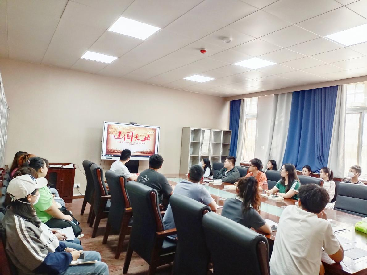 影片在铿锵有力的建国宣告中结束,振奋人心的场景感染了在场观影的每一位党员。王鹏林同学深有感触的说道,《建国大业》让我感受到了新中国成立这一伟大历史时刻的庄严与激动。推进中国式现代化,必须毫不动摇坚持党的全面领导,作为青年党员,我们需要时刻保持警醒,为实现中华民族伟大复兴的中国梦而努力奋斗。李梦钦同学表示,新中国的诞生是无数革命先烈用他们的生命换来的,我们理应继承和弘扬革命先烈的精神,立志做有理想、敢担当、能吃苦、肯奋斗的新时代好青年,让青春在全面建设社会主义现代化国家的火热实践中绽放绚丽之花。张可同学表示,回望新中国成立七十余年,党率领人民群众先后取得了革命、建设和改革的伟大胜利,开创和发展了中国特色社会主义。眼下,作为新时代新青年,我们应不忘来时路,努力创造中国历史,使中国之盛世如前人之所愿。李柯霖同学深有感触的说道,看完《建国大业》,让我明白了只有在中国共产党的领导下,中华民族才能实现伟大复兴。因此,我们要坚持党的领导,增强“四个意识”、坚定“四个自信”、做到“两个维护”、拥护“两个确立”,牢记“国之大者”。