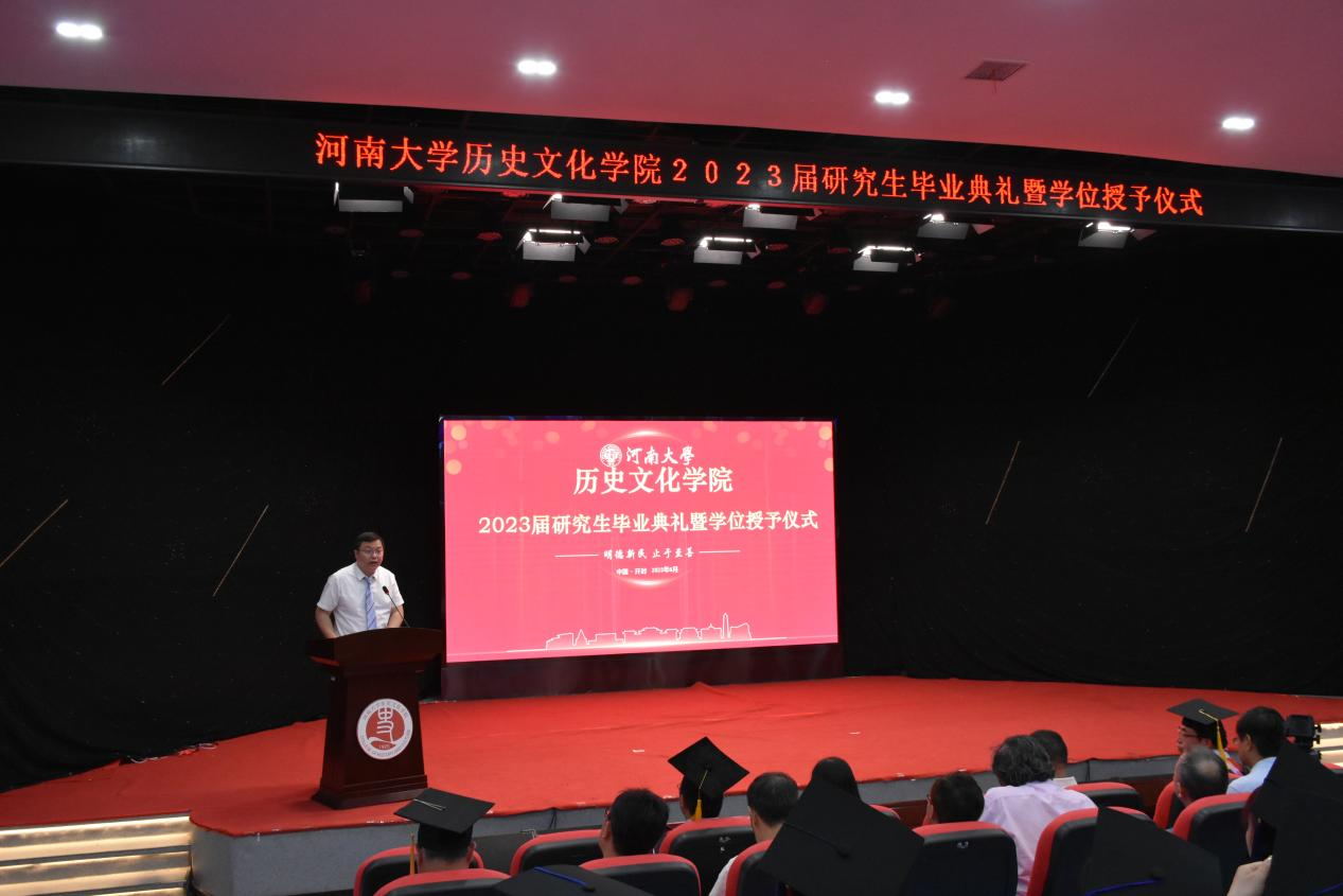 张占党对同学们顺利毕业表示祝贺,对老师们无私奉献表示感谢。叮嘱毕业生坚定理想信念,追逐青春梦想,拓宽青春光谱,迸发青春能量,为民族复兴铺路架桥,为祖国建设添砖加瓦。勇于砥砺奋进,扬起远航风帆,在未来征程上踔厉奋发、勇毅前行,勇当强国建设、民族复兴伟业的生力军。厚植家国情怀,赓续历史文脉,阐释中国道路、赓续历史文脉、解读中国实践,担当起党和人民赋予的历史重任。