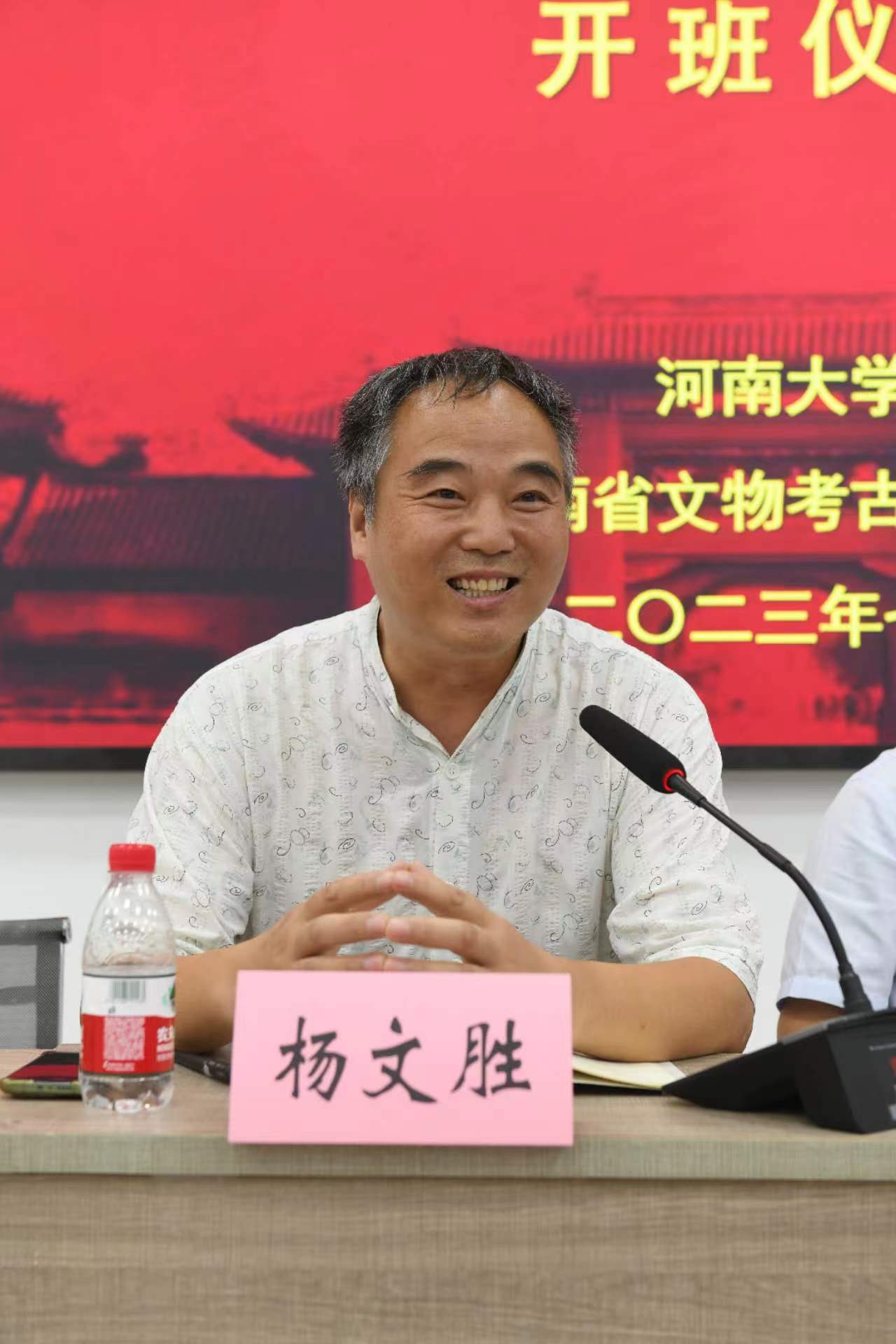 杨文胜代表河南省文物考古研究院致辞。他表示,在国家和省政府的大力支持下,夏文化研究取得了一系列重大研究成果,登封王城岗、禹州瓦店等遗址相关工作有序展开。在夏文化研究领域,要将考古探索和文献研究有机结合起来,发挥河南大学文史研究优势,并鼓励学员要潜心学术研究,成为夏文化研究的中坚力量。