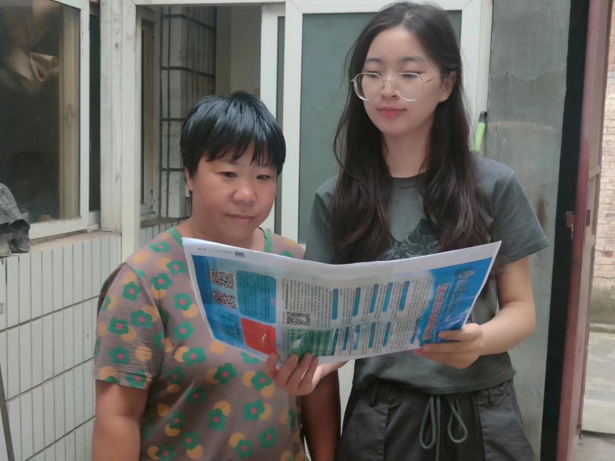 7月27日,资助工作站队员赵佳欣积极与村书记沟通,深入了解村中升学情况及大学生生活状况,进而把握宣传重点,制定宣传计划。在村书记的全力支持下,通过张贴《河南大学本科生资助政策简介》,广播宣传国家资助政策,在村QQ、微信等群聊中发送推文,村民们初步了解了国家资助政策的内容。7月28日,赵佳欣在山西省晋城市泽州县天水岭村开展“资助乡村行”活动。在资助政策入户宣讲中,结合宣传视频与宣传手册耐心地为村民多层次讲解国家奖助学金、国家助学贷款、新生绿色通道、大学生应征入伍服役、基层就业贷款、“地方优师”计划、校内资助等政策,并对家长和学生的问题一一解答,让家长充分了解了孩子就学能获得的各项奖励与补助,取得了较好的反响。她还为村民展示了学校资助活动中的优秀作品,不少学生都被作者勤奋学习、努力上进、回报国家的精神触动,表示以优秀的学长学姐为榜样扎实本领,感恩社会。此外,在宣传过程中,赵佳欣也注意收集家长和同学对精准资助和资助育人工作的建议,为之后开展相关工作提供思路。
