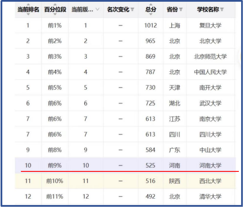 近日,软科发布2023年度“中国最好学科排名”,河南大学中国史学科以量化积分525分居全国高校第10位,排名进入全国前9%,与去年同期相比,提升了6个位次,积分和排名居全校首位。