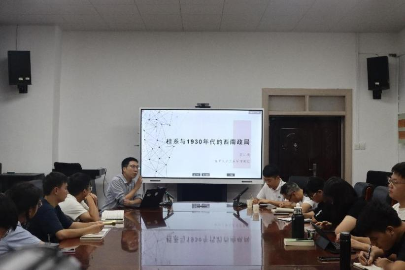 在本场讲座中,贺江枫教授以严谨的逻辑、幽默的语言重现了一九三零年代波谲云诡的西南政局,深入分析了桂系生存逻辑的不断转变以及桂系在复杂的政治形势中长期屹立不倒的原因,给在场师生带来深刻的思考和启迪。
