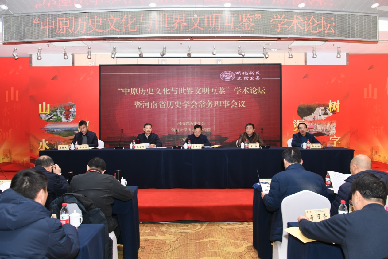 承办的“中原历史文化与世界文明互鉴”学术论坛暨河南省历史学会常务理事会议在我校金明校区举行。河南省历史学会会长、河南大学人文社科高等研究院院长张宝明教授、河南省历史学会负责人及常务理事出席会议,河南省社会科学界联合会主席李庚香研究员、北京大学张帆教授、东北师范大学韩东育教授受邀参加。开幕式由河南省历史学会副会长兼副秘书长、河南大学人文社科研究院院长桓占伟主持。