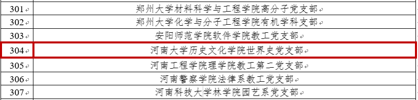 世界史系党支部先后荣获河南大学先进基层党组织(2012年),荣获河南省先进基层党组织(2016年),2018年入选首批“全国高校党建工作样板支部培育创建单位”,并于2021年1月顺利通过教育部组织的验收。在推进支部党建工作中,坚持立德树人根本任务,构建以党建为引领的“1+2+6”教师党支部育人工作模式。