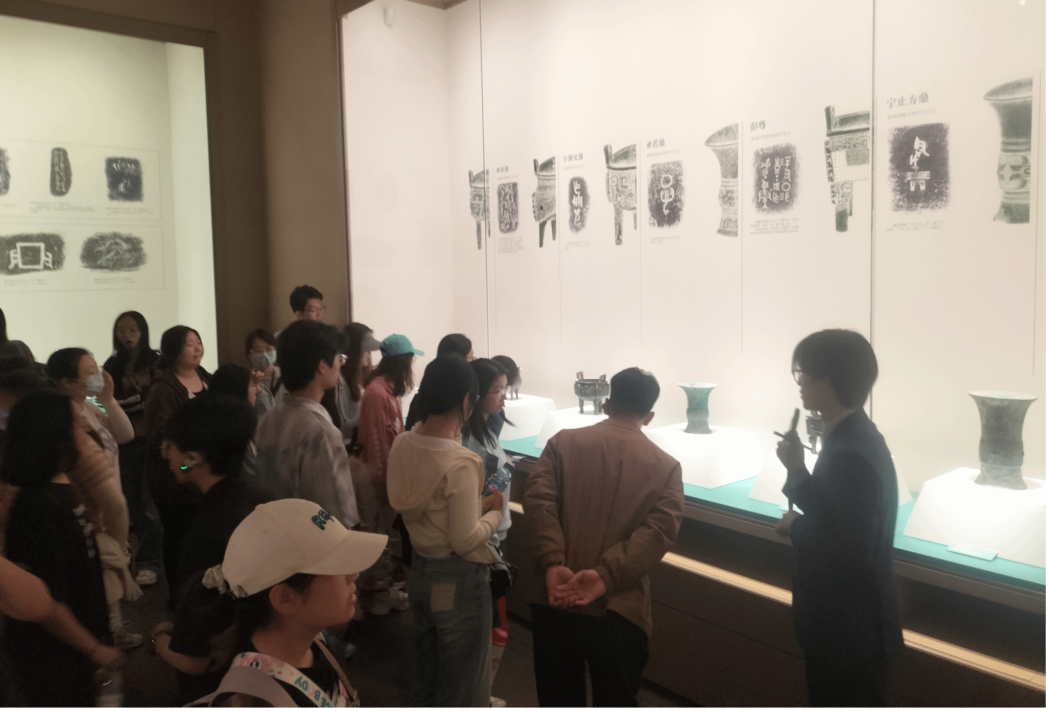 5月7日下午,考古学、文物与博物馆学专业师生抵达殷墟博物馆,该馆聚焦“伟大的商文明”这一主题,展出青铜器、陶器、玉器、甲骨等文物近4000件(套),展陈文物数量庞大、类型多样,从商代史、甲骨学、考古史、商文明的世界传播等多个角度,全方位阐释商代繁盛的城市文明、完善的礼乐文明、发达的青铜文明、灿烂的文字文明以及高超的手工业技术等,生动呈现了商文明对于中华文明乃至人类文明发展史上的重要地位和作用。作为中国考古学的圣地和摇篮,距今3300多年的殷墟留下了迄今为止所知最早的文字系统和文献,是我国历史上第一个文献可考、为考古发掘所证实的商代晚期都城遗址。考察队伍置身于博物馆中,切身地感受到先民的智慧,领悟到“伟大的商文明”这一主题的含义。
