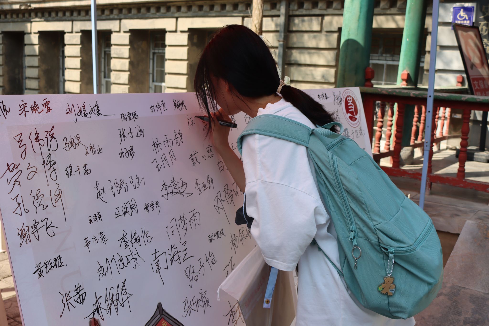 同学们激动地在签名板前写下自己的名字,并在90vs足球比分