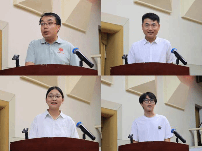 在校生代表2022级本科生陈悦发言,寄语2024级同学们要把握在校学习的机会,努力学习专业知识、珍惜潜心阅读的时光、积极探索各种可能,保持对知识的渴望与探索的热忱,在不懈奋斗中磨砺意志。新生代表2024级研究生张浩天希望在新的人生起点上,能和同学们一起提升专业技能,锤炼实践本领,发挥个人所长,找到属于自己的人生答案。