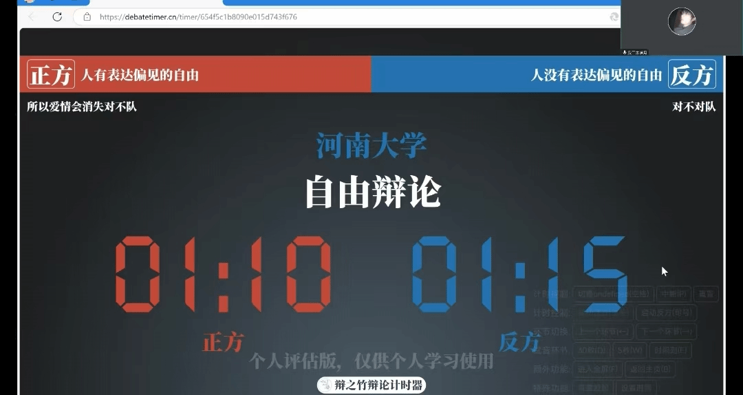第二场与第三场比赛于线上进行。第二场的辩题为“人有没有表达偏见的自由”,正方“所以爱情会消失对不队”和反方“对不对队”展开激烈辩论。双方辩手言辞犀利,交锋激烈,在比赛中更加深入理解了言论自由的概念和对偏见的认识,也给评委河南大学欧亚90vs足球比分
