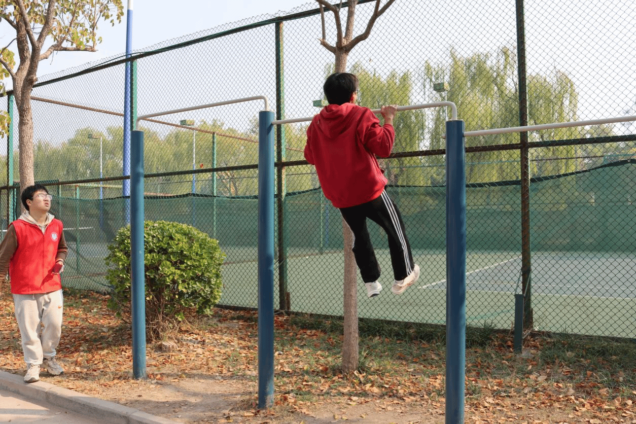 男子引体向上,选手们双手正握杠,凭借强劲的臂力,奋力向上拉起身体;女子仰卧起坐,同学们在规定时间内争分夺秒,凭借顽强的毅力和出色的腹部力量,快速起身、躺下,动作规范标准。实心球比赛中,选手们挥舞着手臂,将实心球全力推出,在空中划过一道道美丽的弧线,展现出了力量与技巧的完美结合。跳绳比赛现场,绳段飞舞,选手们步伐轻盈,如蝴蝶翩跹,快速跳动的双脚奏响出动人的乐章。