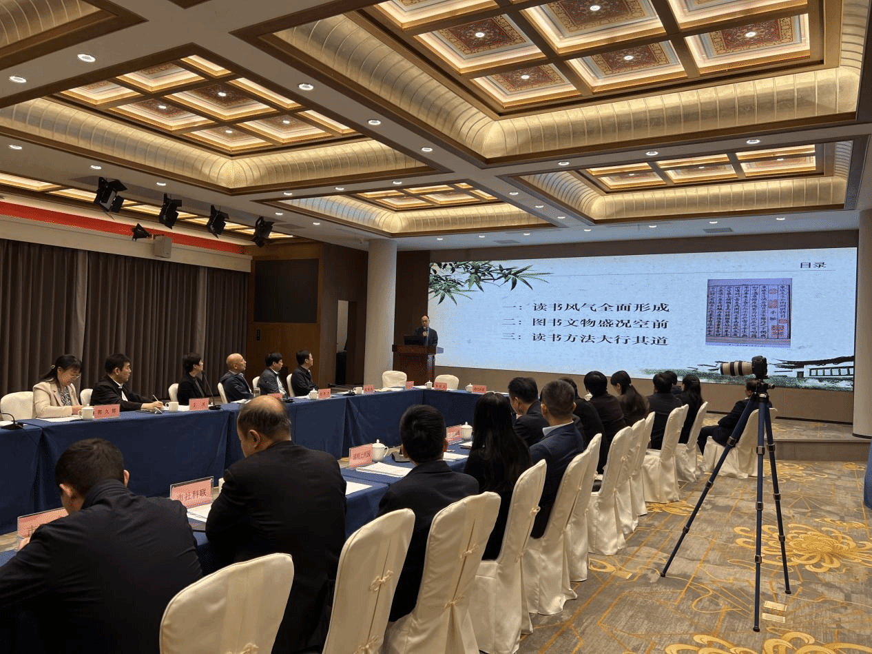 教授耿元骊在会议上做了题为《在宋朝,开启读书生活》的专题交流发言。认为宋朝读书风气盛行,从皇帝到知识分子到百姓,都以读书为荣,其中既有功利性的高头讲章,也有非功利性读闲云野鹤。但无论哪一种读书模式,只要开卷,即为有益。从上到下的读书风气,激励了宋朝的图书出版大为盛行,先后有《开宝藏》《太平广记》《太平御览》《文苑英华》《册府元龟》等综合性大书编纂完成;庆历、熙丰、崇宁三次兴学,也推动了更多人需要图书;而雕版印刷、活字印刷、造纸术的改进,也在技术上支持了图书的更广泛流通。宋朝人更为注重读书方法,希望读书能获得“书味”,既要力学,又要深思,形成贯通性的读书方法。