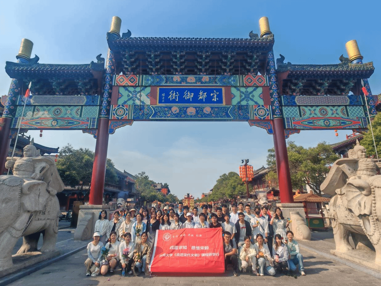 省级通识教育示范课程《走进宋代文明》主讲教师滕亚秋带领2024级本科生开展了研学实践活动,考察了开封宋都御街、960 文化创意园区、珠玑巷、双龙巷、河南大学明伦校区及周边夜市区域。
