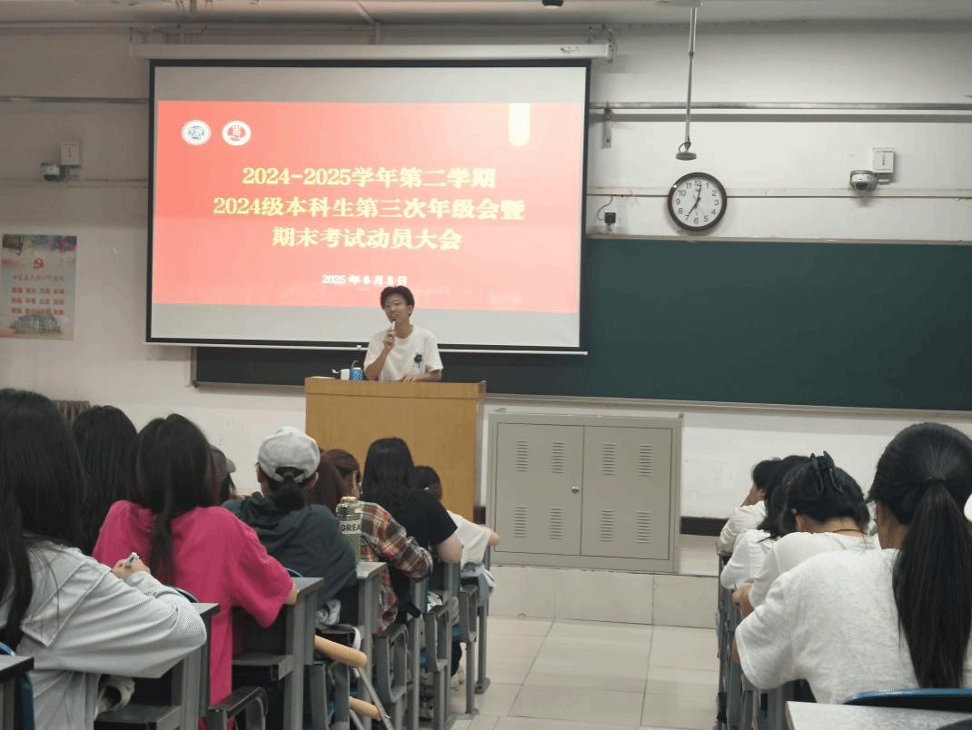 2024级本科生2024-2025学年总结大会暨期末考试动员大会在明伦校区十号楼顺利召开,本次会议由2024级辅导员田管宁主持,2024级全体同学与会。