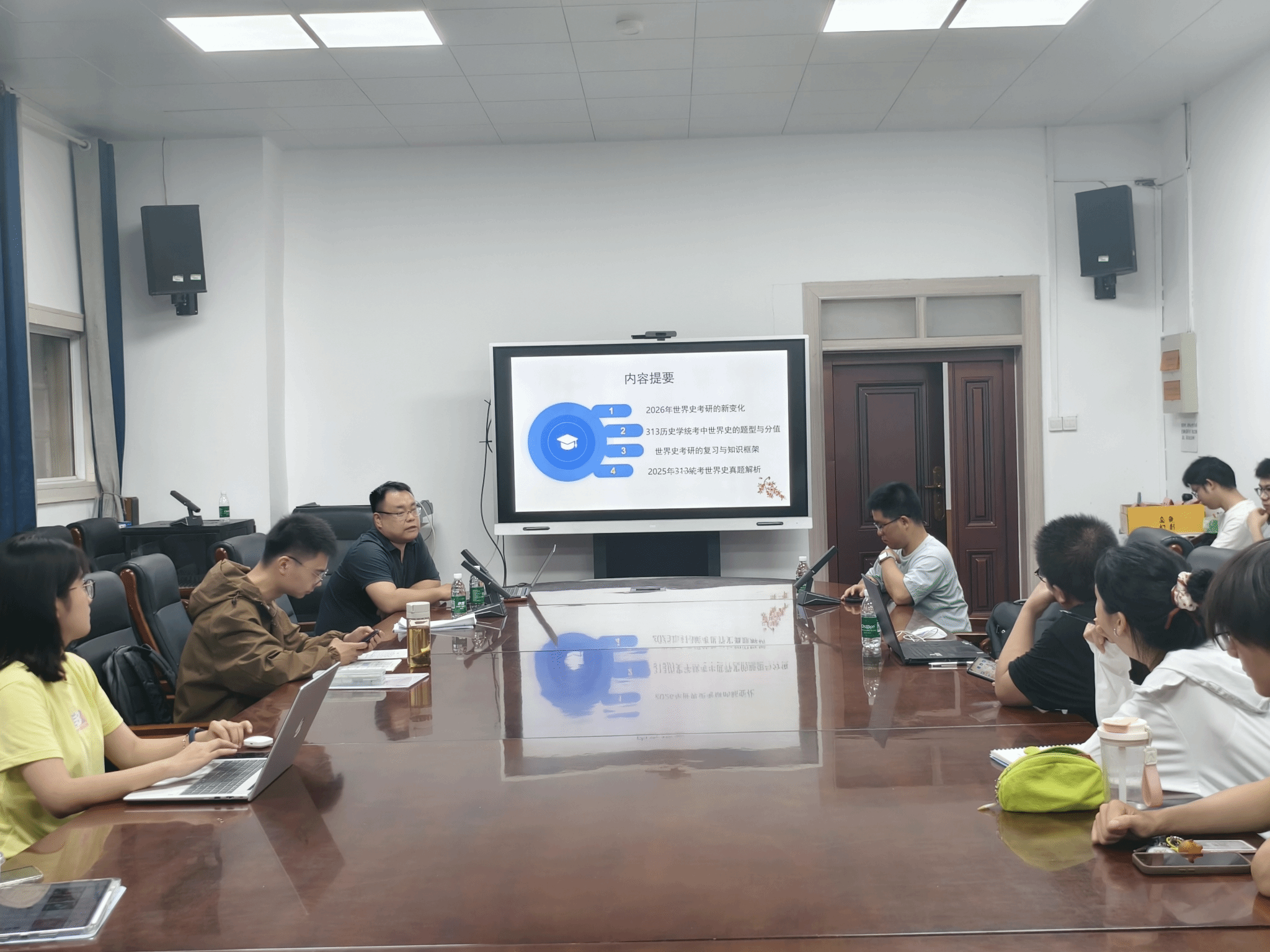三楼会议室举行。此场交流会聚焦世界史和考古文博专业的学习规划与发展路径,分别由世界史教研室主任杨磊和考古文博系主任刘中伟主讲。